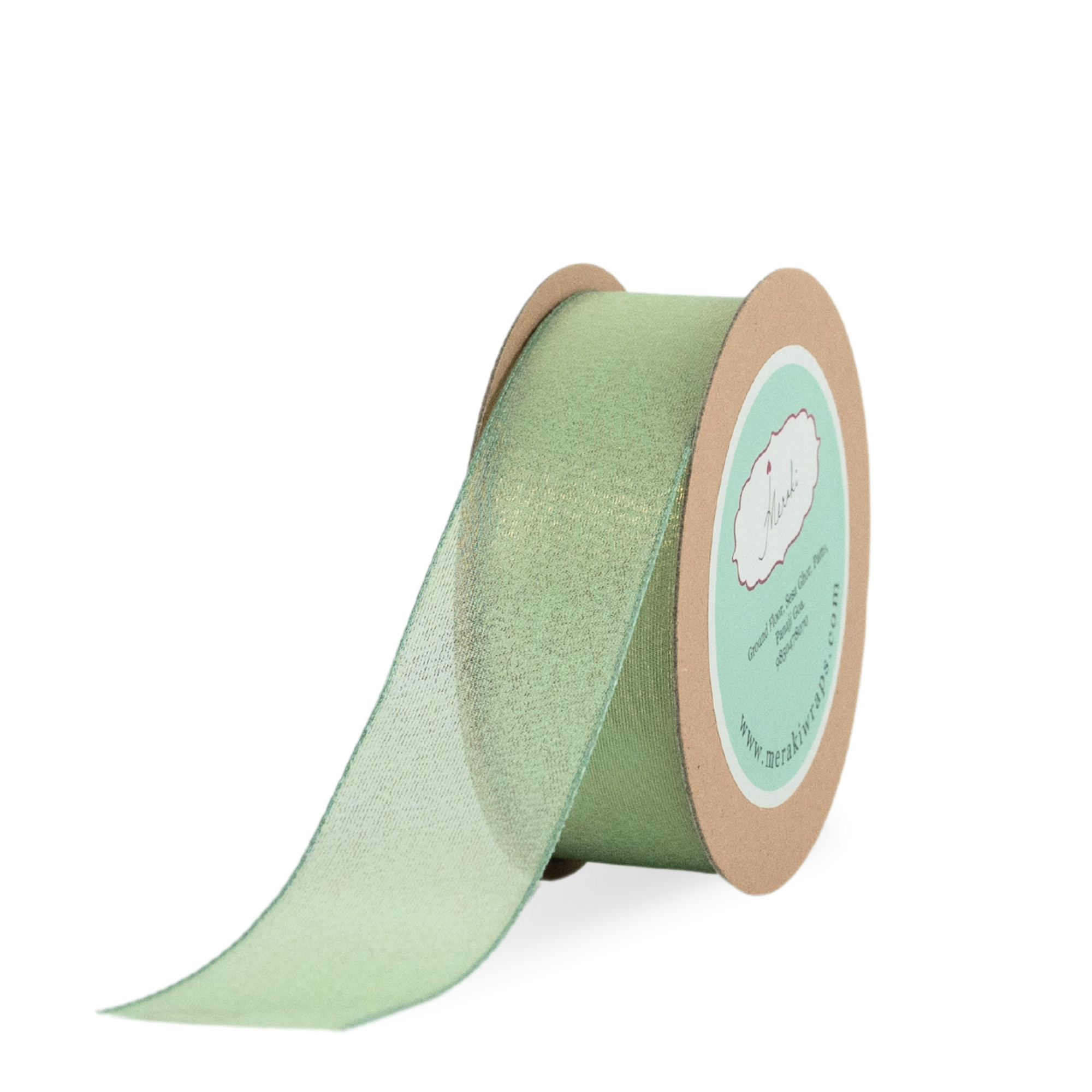 This mild Shimmery ribbon collection comes in a variety of soft classic colors. Ideal for sophisticated gift wrapping, wedding décor, and craft projects, these ribbons add a delicate and refined touch to any occasion - Green.
