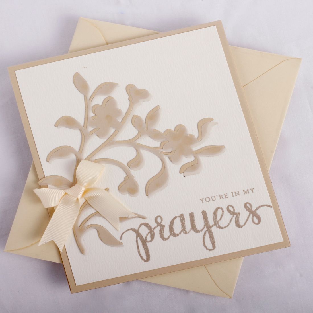 This handcrafted card is adorned with a two-hued ribbon and two-toned floral detailing. Convey your fondest affections and wisest counsel to the newly married couple.