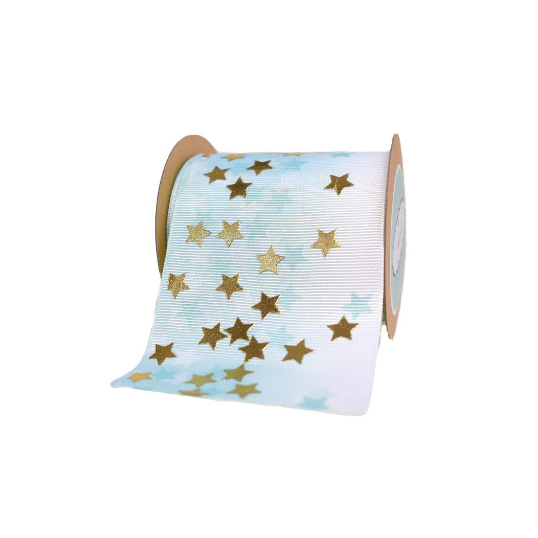 White Grosgrain ribbon with Pink/Blue and gold Stars