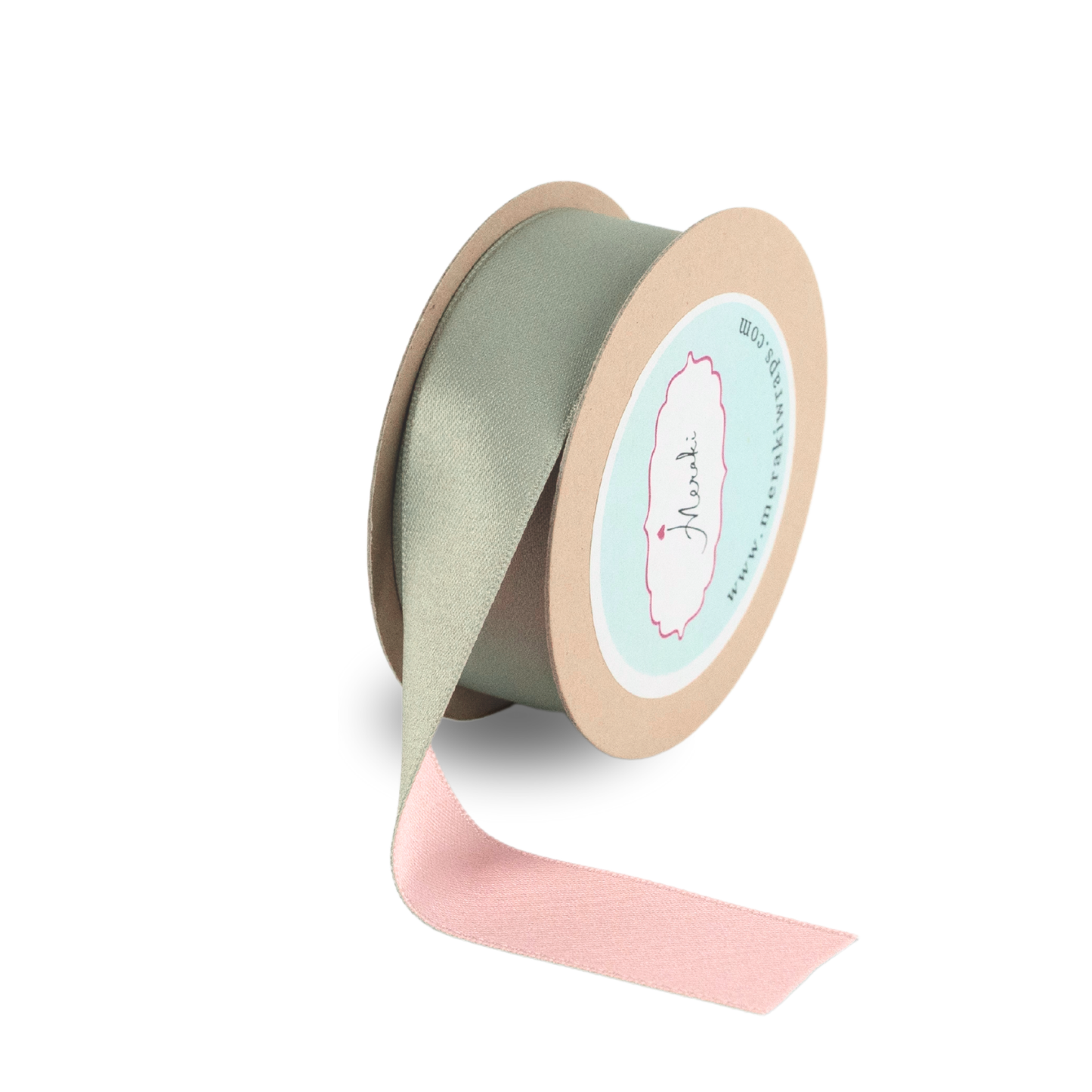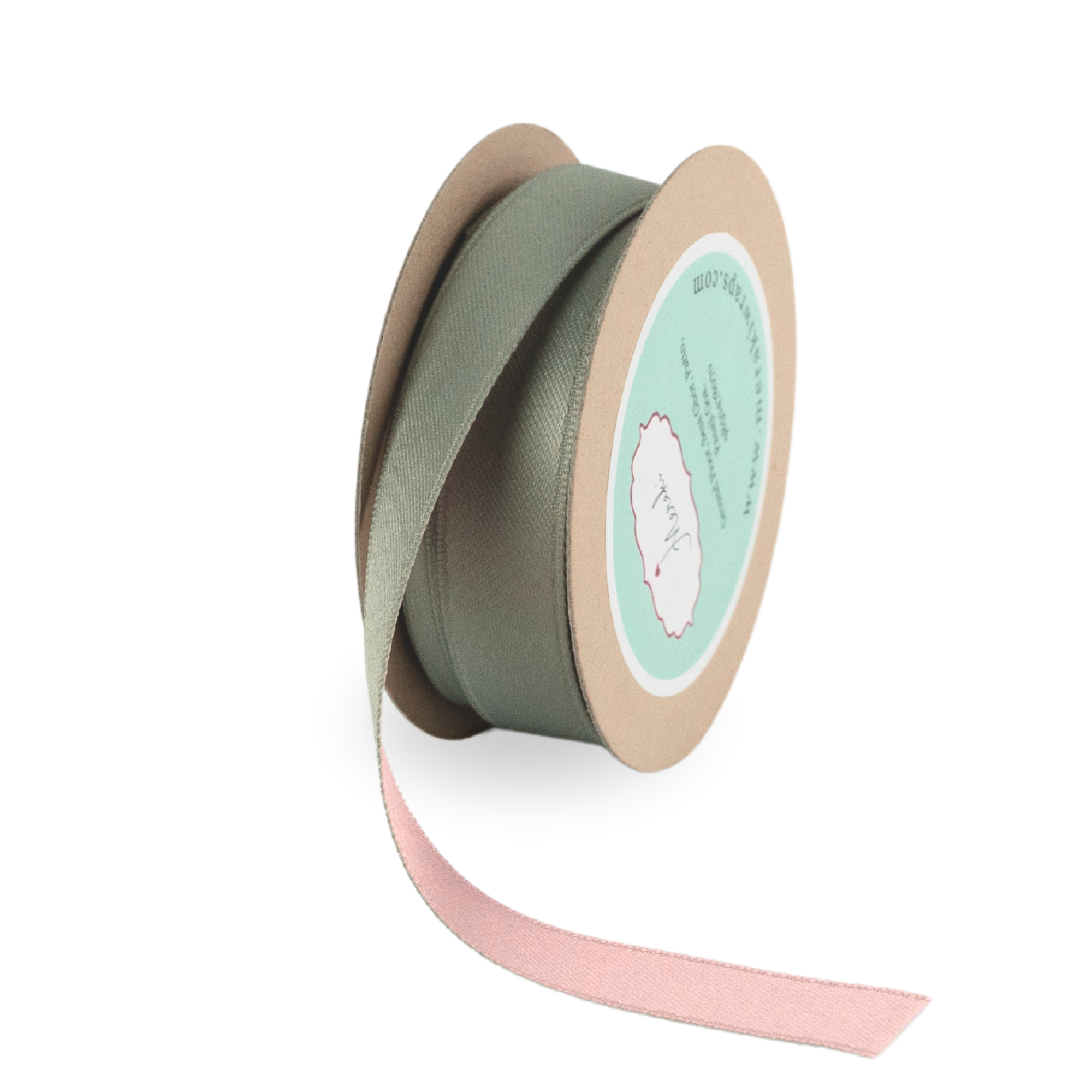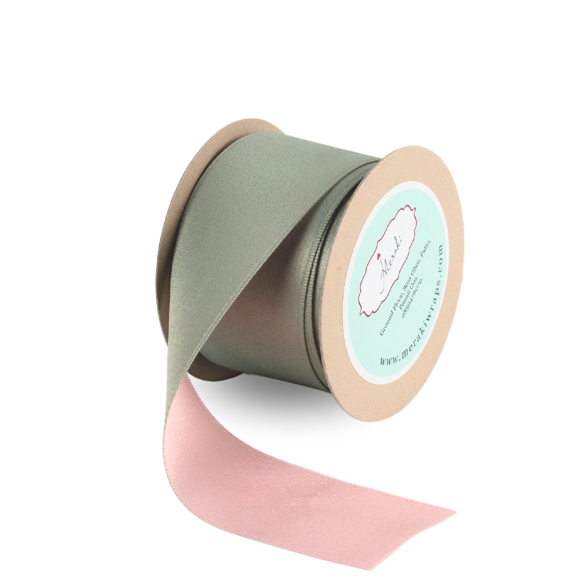Reversible ribbon features a sage green on one side and a delicate pink on the other, offering a beautiful blend of nature and charm. Perfect for spring-themed décor, gift wrapping, and crafts, this ribbon provides a refreshing and elegant touch to your designs.